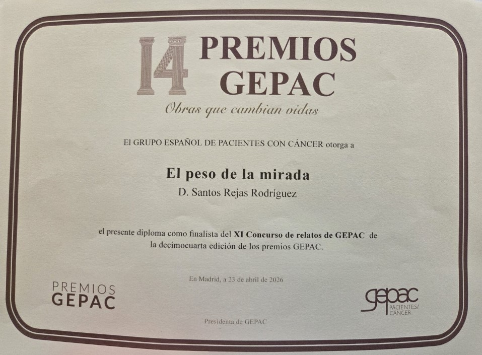 También queremos destacar que nuestro querido colaborador de la Fundación, Santos Rejas, ha sido seleccionado como finalista en el XI concurso de relatos GEPAC ¡Enhorabuena!